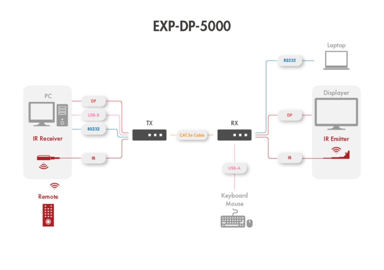 aegis EXP-DP-5000は、先進的なAVT技術を採用したプロフェッショナルグレードのDisplayPortエクステンダーで、1本のCat.6(またはそれ以上の規格)ネットワークケーブルを使用してDisplayPort信号を最大100メートルまで延長することが可能です。本製品は4K60Hzの超高解像度出力をサポートし、HDCP 1.3に準拠するとともに、DisplayPort 1.2a規格に完全対応しています。USB KVM機能を統合し、双方向IRおよびRS232伝送をサポートすることで、EXP-DP-5000はビデオ会議システム、制御センター、プロフェッショナルなオーディオビジュアル用途に最適なソリューションを提供します。