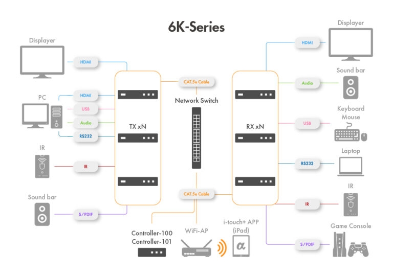 ◎ 透過IP網路整合傳輸視訊訊號/音訊訊號/USB數據/RS232控制/HDMI®信號/紅外線控制。